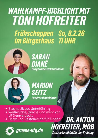 MEGA-Event mit Toni Hofreiter Sonntag08.02.202611:00 – 13:00 UhrBürgerhausUnterföhringorganisiert von Grüne UnterföhringDownload als ics-Datei